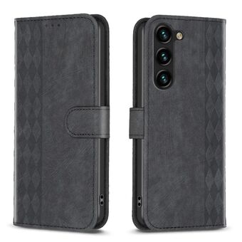 Για Samsung Galaxy S23 5G καρό ανάγλυφη δερμάτινη θήκη τηλεφώνου (Μαύρο)