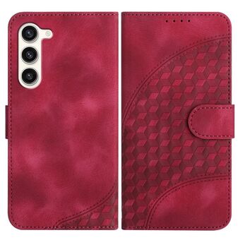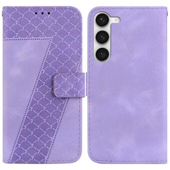 Θήκη τηλεφώνου Samsung Galaxy S23 5G από δέρμα με ανάγλυφο σχέδιο σε σχήμα επτά (Μωβ)