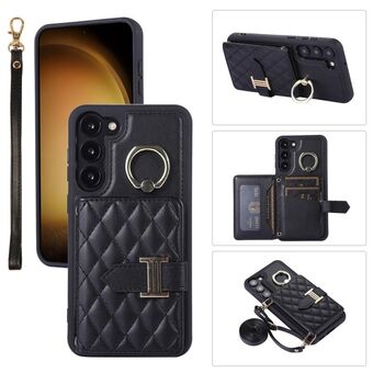 Για το Samsung Galaxy S23 Αντιολισθητική θήκη τηλεφώνου PU πλήρους κάλυψης δακτυλίου με ζώνη καρπού (Μαύρο)
