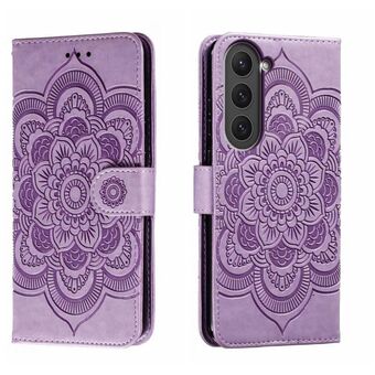 Για Samsung Galaxy S23 5G Sun Mandala ανάγλυφο μοτίβο τηλέφωνο δερμάτινη θήκη (μωβ)