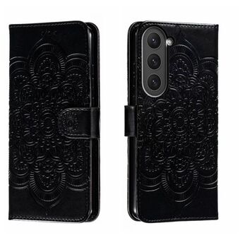 Για Samsung Galaxy S23 5G Sun Mandala ανάγλυφο μοτίβο τηλέφωνο δερμάτινη θήκη (μαύρο)