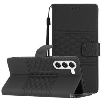Για Samsung Galaxy S23 5G Diamond ανάγλυφο δέρμα αίσθηση δέρμα τηλέφωνο υπόθεση με κορδόνι (μαύρο)