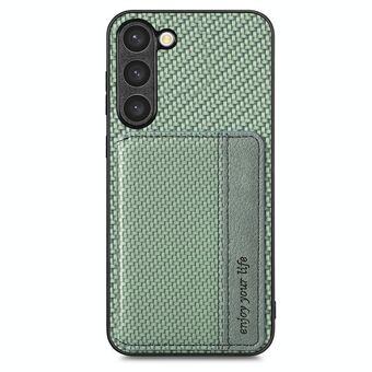 Για Samsung Galaxy S23 5G ινών άνθρακα μαγνητική κάρτα τσάντα υπόθεση τηλεφώνου (πράσινο)