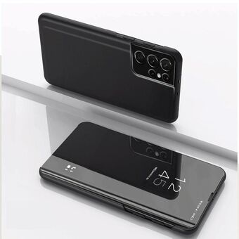 Για Samsung Galaxy S23 Ultra 5G Επιμεταλλωμένο δέρμα Mirror θήκη τηλεφώνου με θήκη (Μαύρο)