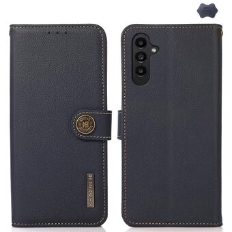For Samsung Galaxy S24 FE 5G KHAZNEH Custer Genuine Leather RFID Phone Case(Blue)
