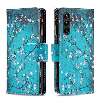 For Samsung Galaxy A15 Colored Drawing Pattern Zipper Leather Phone Case(Plum Blossom)