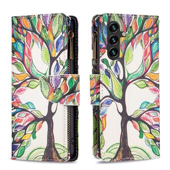 For Samsung Galaxy A15 Colored Drawing Pattern Zipper Leather Phone Case(Big Tree)