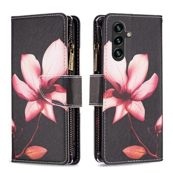 For Samsung Galaxy A15 Colored Drawing Pattern Zipper Leather Phone Case(Lotus)