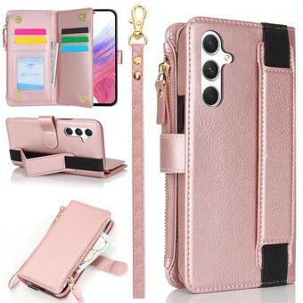For Samsung Galaxy S23 FE 5G Wristband Holder Zipper Purse RFID Leather Phone Case(Rose Gold)
