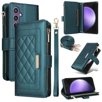For Samsung Galaxy S23 FE 5G Crossbody Zipper Wallet Rhombus Leather Phone Case(Green)