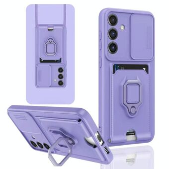 For Samsung Galaxy S23 FE 5G Sliding Camshield Magnetic Card Holder Silicone Phone Case(Light Purple)