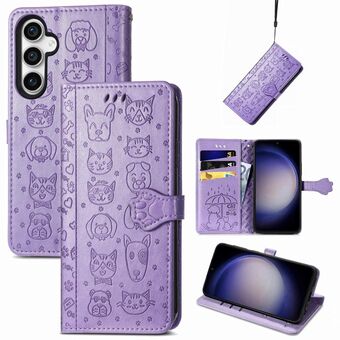 For Samsung Galaxy S23 FE 5G Cat and Dog Embossed Leather Phone Case(Purple)
