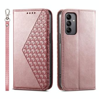 Για Samsung Galaxy A05s Cubic Grid Calf Texture μαγνητική δερμάτινη θήκη τηλεφώνου (ροζ χρυσό)