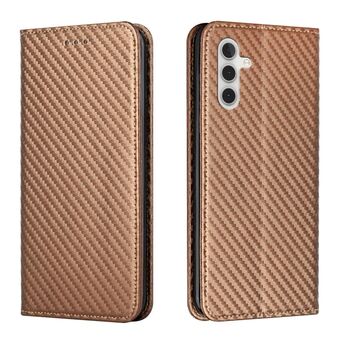 For Samsung Galaxy S23 FE 5G Carbon Fiber Texture Flip Holder Leather Phone Case(Brown)
