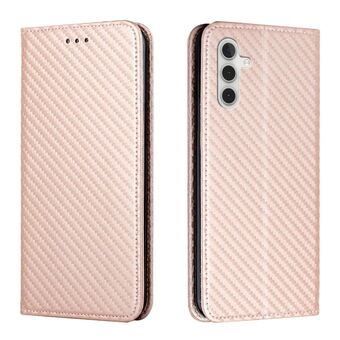 For Samsung Galaxy S23 FE 5G Carbon Fiber Texture Flip Holder Leather Phone Case(Rose Gold)