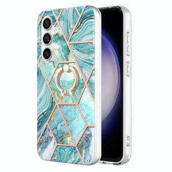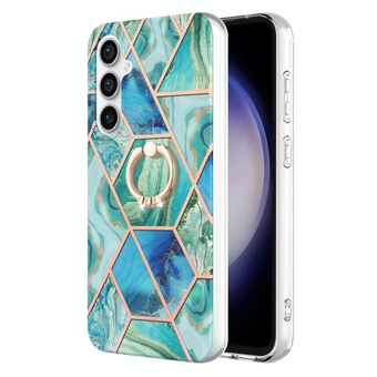 For Samsung Galaxy S23 FE 5G Splicing Marble Flower IMD TPU Phone Case Ring Holder(Blue Green)