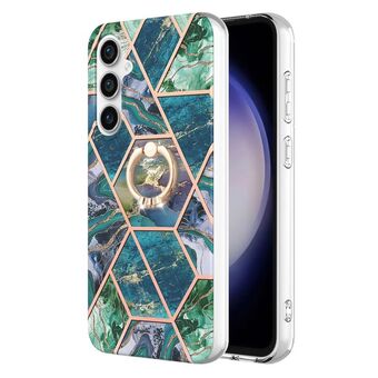 For Samsung Galaxy S23 FE 5G Splicing Marble Flower IMD TPU Phone Case Ring Holder(Green)