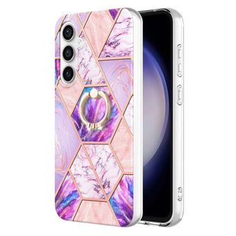 For Samsung Galaxy S23 FE 5G Splicing Marble Flower IMD TPU Phone Case Ring Holder(Light Purple)