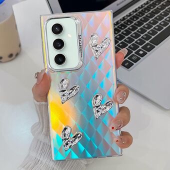 For Samsung Galaxy S23 FE 5G Electroplating 4-Heart Laser Texture TPU Phone Case(Plaid)