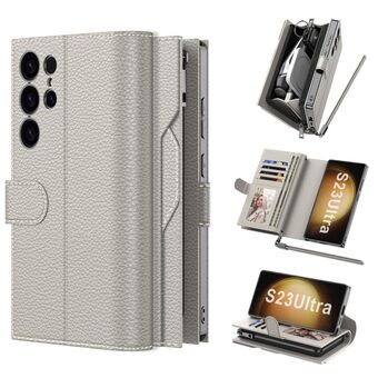 For Samsung Galaxy S23 Ultra 5G GKK Integrated Electroplating Leather Z-Shape MagSafe Phone Case(Mountain Gray) (GKK)