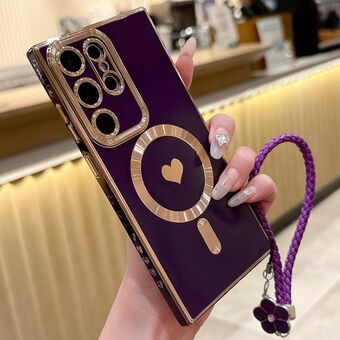 For Samsung Galaxy S23 Ultra 5G Pupil Side Heart MagSafe Electroplating Phone Case with Lanyard(Dark Purple)