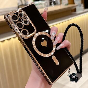 For Samsung Galaxy S23 Ultra 5G Pupil Side Heart MagSafe Electroplating Phone Case with Lanyard(Black)