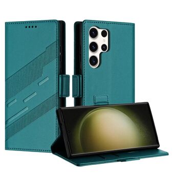 For Samsung Galaxy S23 Ultra 5G Embossed Multi-functional Side Suction Wallet Retro Leather Phone Case(Dark Green)