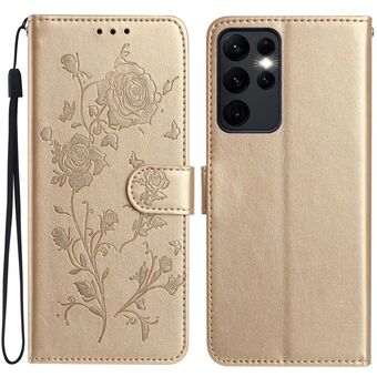 For Samsung Galaxy S23 Ultra 5G Rose Flower Embossing Pattern Leather Phone Case(Gold)