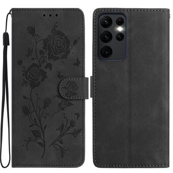 For Samsung Galaxy S23 Ultra 5G Rose Flower Embossing Pattern Leather Phone Case(Black)