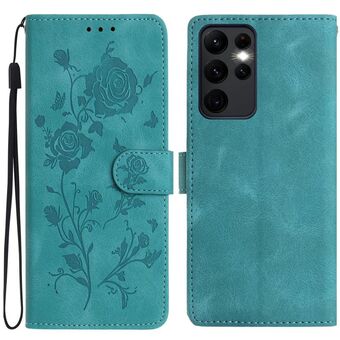 For Samsung Galaxy S23 Ultra 5G Rose Flower Embossing Pattern Leather Phone Case(Green)