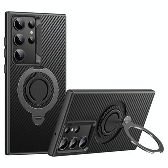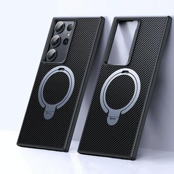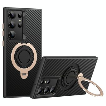 Θήκη τηλεφώνου Samsung Galaxy S23 Ultra 5G από ανθρακονήματα με MagSafe και περιστρεφόμενη βάση 360 μοιρών (Μαύρο Γκρι)