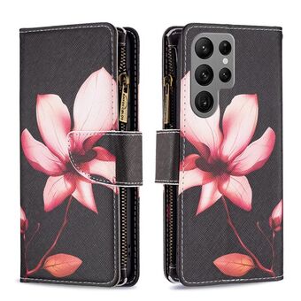 Θήκη τηλεφώνου Samsung Galaxy S23 Ultra 5G από δέρμα με φερμουάρ και πολύχρωμο σχέδιο (Λωτός)