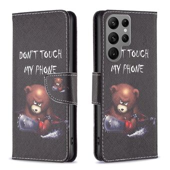 Θήκη τηλεφώνου Samsung Galaxy S23 Ultra 5G με σχέδιο ζωγραφικής και δέρμα (Αρκούδα)