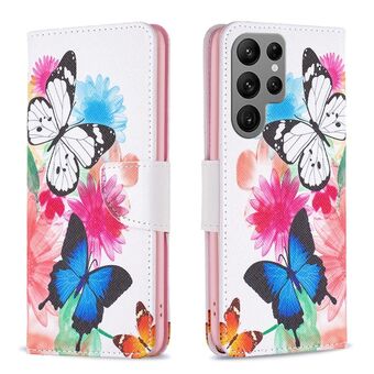 Θήκη τηλεφώνου Samsung Galaxy S23 Ultra 5G με σχέδιο ζωγραφικής και δέρμα (Πεταλούδες)