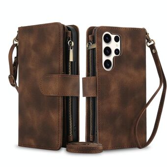 For Samsung Galaxy S23 Ultra 5G Dream 9-Card Zipper Wallet RFID Leather Phone Case with Lanyard(Brown)