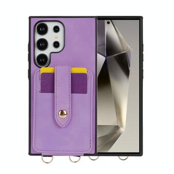 For Samsung Galaxy S23 Ultra 5G Skin Card Bag Crossbody Lanyard Phone Case(Purple)