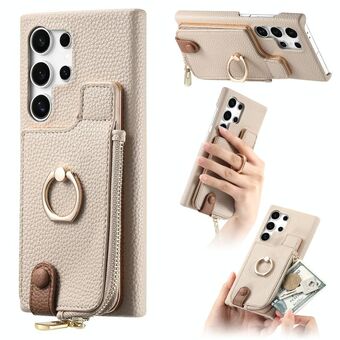 For Samsung Galaxy S23 Ultra 5G Litchi Leather Oil Edge Ring Zipper Wallet Back Phone Case(White)