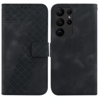 For Samsung Galaxy S23 Ultra 5G Seven-shaped Embossed Leather Phone Case(Black)