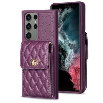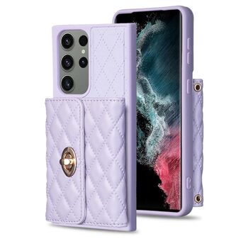Για Samsung Galaxy S23 Ultra 5G Οριζόντια μεταλλική πόρπη πορτοφόλι ρομβοειδή δέρμα τηλέφωνο υπόθεση (μωβ)