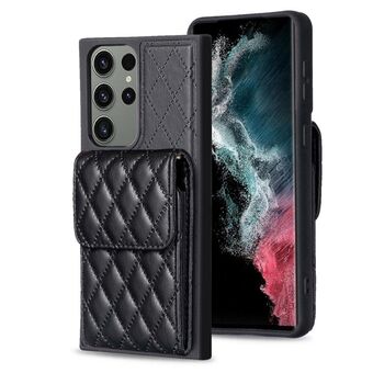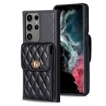 Για το Samsung Galaxy S23 Ultra 5G Κάθετη πορτοφόλι ρομβοειδής δερμάτινη θήκη τηλεφώνου (Μαύρο)