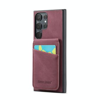 For Samsung Galaxy S23 Ultra 5G Fierre Shann Crazy Horse Card Holder Back Cover PU Phone Case(Wine Red) (FIERRE SHANN)
