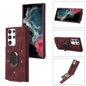 Για Samsung Galaxy S23 Ultra 5G θωράκιση δαχτυλίδι πορτοφόλι πίσω κάλυμμα τηλεφώνου υπόθεση (κόκκινο κρασί)