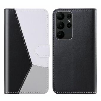 For Samsung Galaxy S23 Ultra 5G Tricolor Stitching Flip Leather Phone Case(Black)