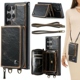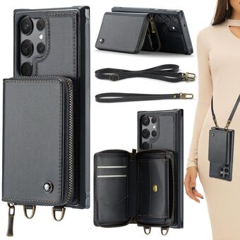 For Samsung Galaxy S23 Ultra 5G JEEHOOD C22 Series Zipper Wallet Leather Phone Case with Dual Lanyard(Black) (JEEHOOD)