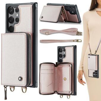 For Samsung Galaxy S23 Ultra 5G JEEHOOD C22 Series Zipper Wallet Leather Phone Case with Dual Lanyard(Rose Gold) (JEEHOOD)