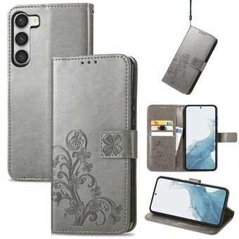 For Samsung Galaxy S23 Ultra 5G Four-leaf Clasp Embossed Buckle Leather Phone Case(Gray)