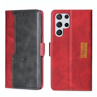 Για Samsung Galaxy S23 Ultra 5G αντίθεση χρώμα πλευρά πόρπη δερμάτινη θήκη τηλεφώνου (κόκκινο + μαύρο)