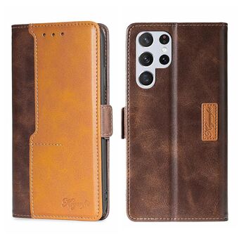 Για Samsung Galaxy S23 Ultra 5G αντίθεση χρώμα πλευρά πόρπη δερμάτινη θήκη τηλεφώνου (σκούρο καφέ + χρυσό)
