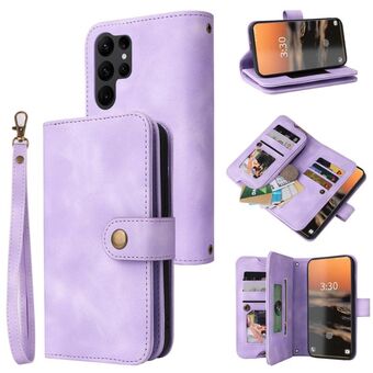 Για Samsung Galaxy S23 Ultra 5G Πολυλειτουργική κάρτα Slot φερμουάρ πορτοφόλι δερμάτινη θήκη τηλεφώνου (μωβ)