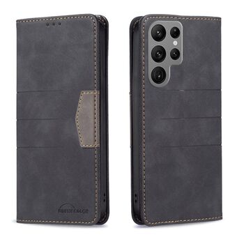 Για Samsung Galaxy S23 Ultra 5G BF10 χρώμα μπλοκ μαγνητικό Flip δερμάτινη θήκη τηλεφώνου (μαύρο)